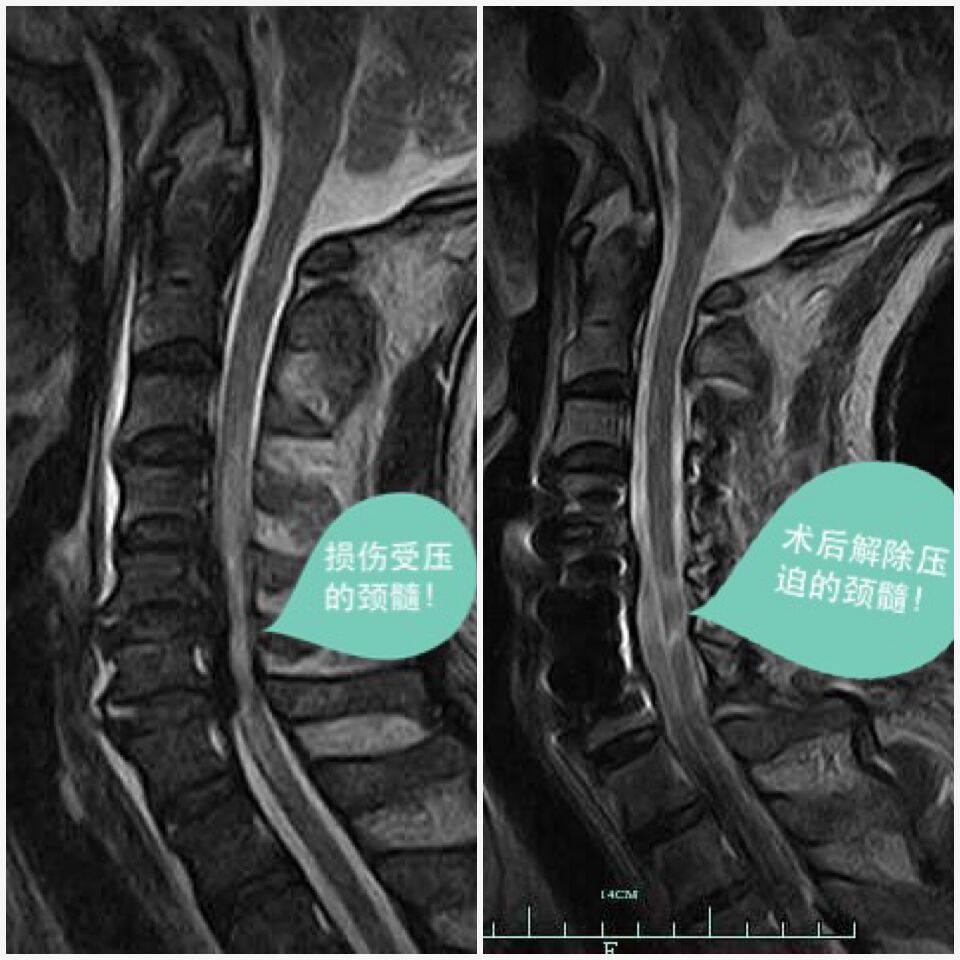 手术后一周,病人的四肢瘫症状进一步好转,血压、心率、呼吸等生命体征已较为平稳,董永强手术团队再次为其施行了颈前路手术,本次手术的重点是去除椎管前方骨化韧带、椎间盘等致压物,并做前方稳定融合固定,使颈髓在椎管前后均无受压,完全通畅,并稳定受损颈椎,恢复颈椎的承重、活动的功能。第二次手术后,病人的活动及感觉功能还在神奇的好转,就像一颗差点被折断的嫩苗又重新恢复了生机,顽强的生长起来。