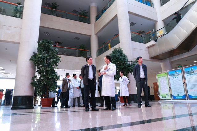 邵全卯一行首先来到我院门诊、急诊和重症医学科实地了解门急诊人次、患者收住、医疗仪器配备、中长期规划编制等情况,并听取我院吕银祥院长的详细汇报。邵全卯对我院的管理、学科、信息和人文等方面给与了高度评价,他表示在40万人口的县城能建设有这样精致而全面发展的三级乙等综合性医院,难能可贵。