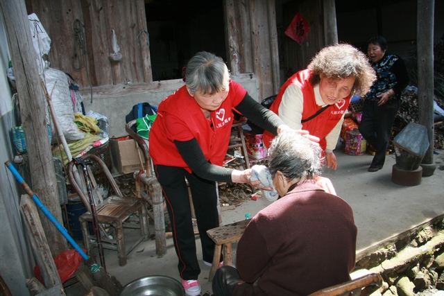 每到老人的家中,志愿者们都送上了慰问品,并详细询问老人的起居生活、身体状况,为老人们测量血压、身体检查、用药咨询,对于行动不便的老人,还主动为他们洗头、理发、修剪指甲。