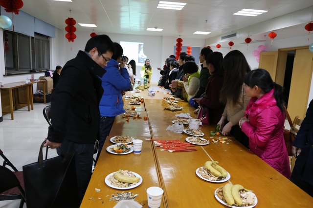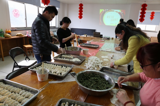 聚会以一场别开生面的饺子宴开始,员工们一起擀饺子皮、包饺子、吃饺子、品尝新昌特产,忙得不亦乐乎,其乐融融。