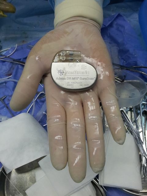 本网讯(黄鹤飞/文)近日,我院心内科为一例三度房室传导阻滞患者成功植入了全球首款经设计、测试和批准后可以在核磁共振成像(MRI)系统中安全使用的Advisa DR MRI SureScan 起搏器和导线系统。此后该患者不仅能行各项CT检查,同时也可以放心行各项核磁共振检查。据悉,这在我县及周边县市尚属首例。
