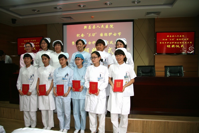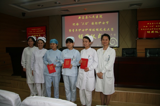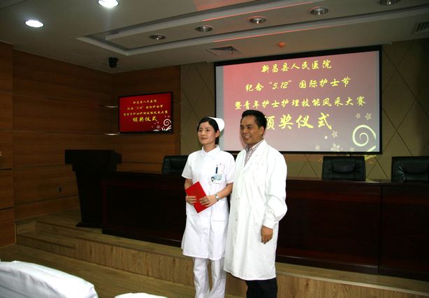 竞赛结束后,举行简单而又隆重的颁奖仪式,医院党委书记、院长吕银祥及姚灿珍副院长参加了颁奖仪式为获奖选手颁奖,并发表了热情洋溢的讲话,感谢护理人员的辛勤工作和付出,对获奖选手表示祝贺,并祝全体护士节日快乐!