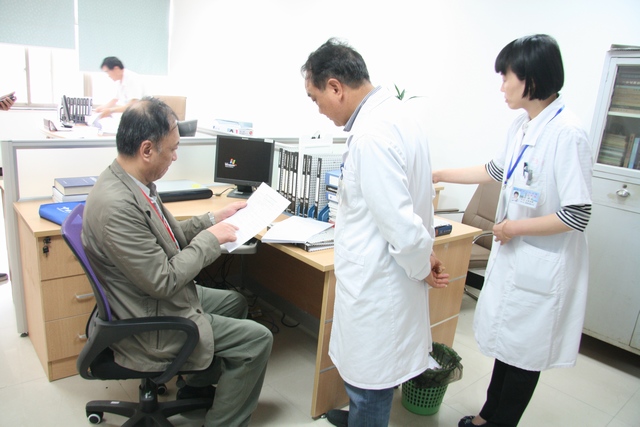 在为期一天的检查评审中,专家组严格对照评审标准,仔细查阅了创建活动的档案材料,实地查看了门急诊、普外科、肛肠外科、药剂科、输血科等临床科室,并就院内感染、提高用药安全、医疗安全管理等问题进行了随机提问,还认真检查了交接班记录、病历记录、危急值班记录等各项核心制度的执行落实情况。