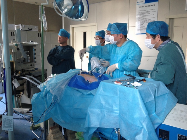 动物手术是我院临床教学的一个创新点,自2010年建立动物手术室以来,原则上坚持每月开展一次以实验猪为对象的手术,大大提高了住院医师的临床实践能力,取得了很好的成效。2011年,医院紧跟外科发展方向,对手术室进行了规范化改造,购置了一套全新的腹腔镜操作设备,更是调动了众多外科医师前来上台操作的积极性,在临床经验得到不断丰富的同时也促进了其微创技术水平的提高。今年伊始,医务科在原有运转模式的基础上又重新调整了相关规定,成立带教团,每次安排教练对外科住院医师进行带教培训,并在年底组织考核,考核结果作为我院腹腔镜手术准入的主要依据。