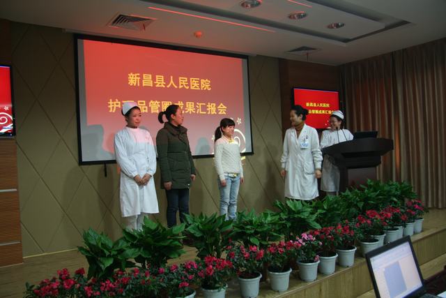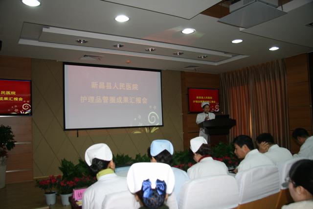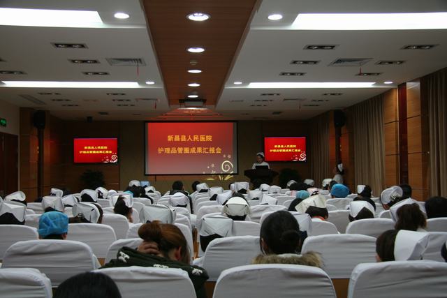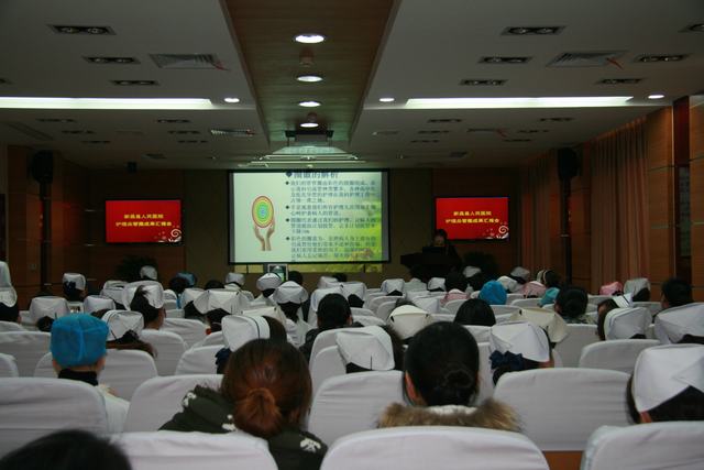 本网讯(潘月敏/文 周越/图)12月31日下午,我院举行首届护理品管圈成果汇报会,由各大科精心选送的10个品管圈圈长通过多媒体形式进行了精彩的展示。护理部人员、护士长及护士代表共100余人参加汇报会,医院院部领导受邀参加汇报会并担任评委。