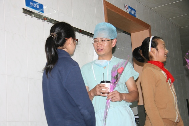 这就是我院医生节“为手术医生和坐诊老专家送上一杯热咖啡” 活动一幕。医生是一个十分辛苦的职业,三百六十五天没有节假日,只要病人需要无论何时何地都随叫随到,对病人来说有着“时间就是生命”之意,应急反应能力决定着病人的生命安危。特别是外科医生时常在手术室前一站往往就是几个小时,手术病人返病房后,晚上休息还牵挂着病人的安危。职业之责任、压力可见一斑。此次活动旨在赞美医生,并营造一种全社会都来关注医生、关爱医生的良好氛围。