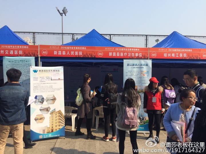 本网讯(钱璐莎/文)为促进我院发展,吸纳新鲜血液,3月26日,在卫计局及人社局等领导的带领下,共计12人赴温州医科大学参加2016届春季招聘会。本次招聘会共有151家单位,共计4000余个岗位,更有部分医院推出百余个岗位,竞争十分激烈。