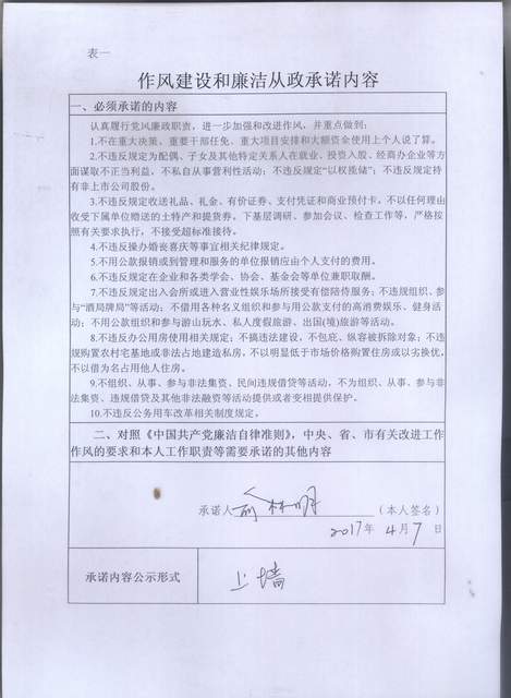 作风建设和廉洁从政承诺——俞林民