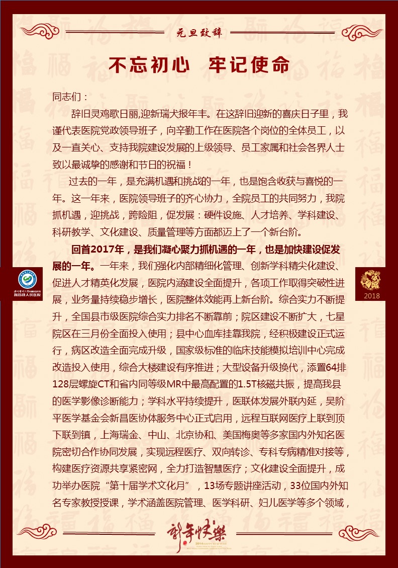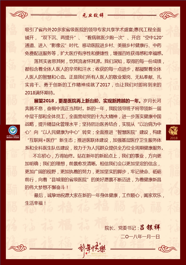 2018年元旦致辞