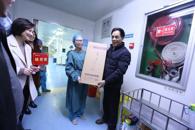 每到一处,慰问的温暖和抽奖的惊喜带来一片欢声笑语,大家互祝新年快乐,共迎新春的到来。院领导感谢值班人员为了医院发展、为了患者康复工作所做出的奉献,并希望他们在坚守岗位的同时,更要保重自己的身体。