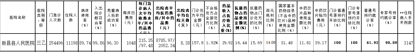 新昌县人民医院2018年第四季度医疗服务阳光用药及相关信息公示