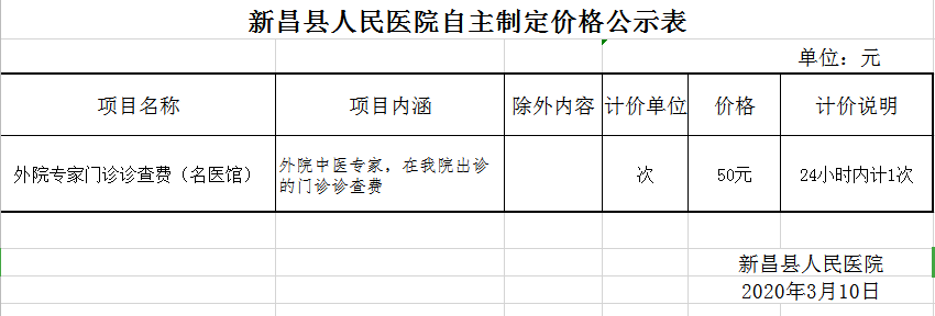 名医馆专家门诊诊查费价格公示表