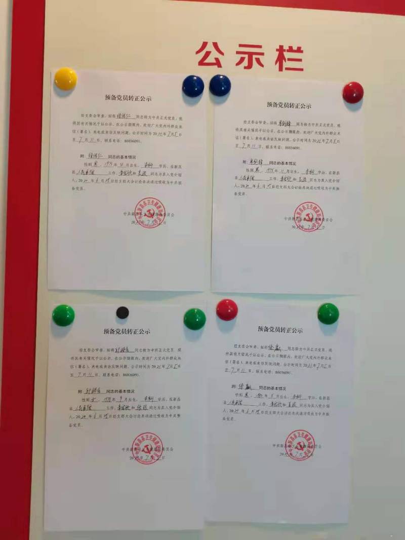 预备党员徐法仁同志、单剑锋同志、邱晓含同志、徐赢同志转正公示