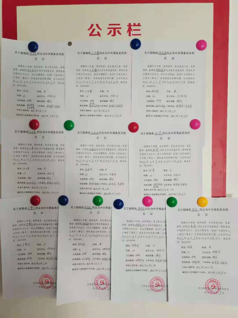 关于拟吸收张击波、王珏霞、何立东、孙小勇、高金凤、张莹、吴梦仪、张志远、朱佳琼、陈荣同志为中共预备党员的公示