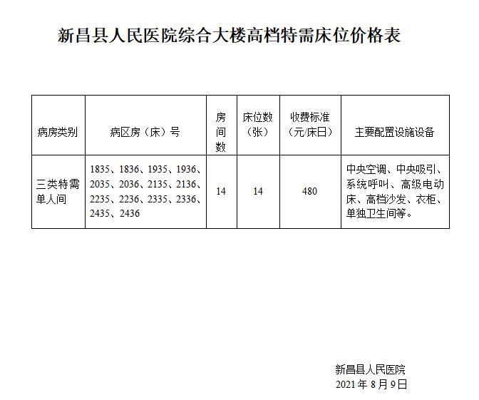新昌县人民医院综合大楼高档特需床位价格表