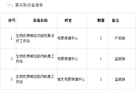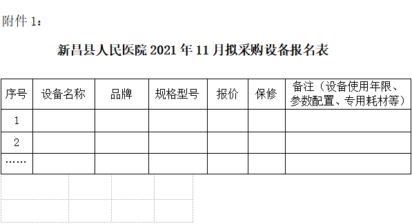 为便于供应商及时了解医院采购信息,根据《财政部关于开展政府采购意向公开工作的通知》(财库{2020}10号)等有关规定,按照医院2021年医疗设备采购计划,我院将近期对以下设备进行市场调研,了解相关产品的型号、性能、功能、市场占有率等情况,请符合条件的供应商积极报名参与。