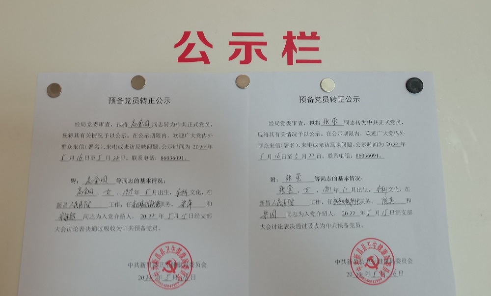 关于预备党员高金凤、张莹同志转正公示