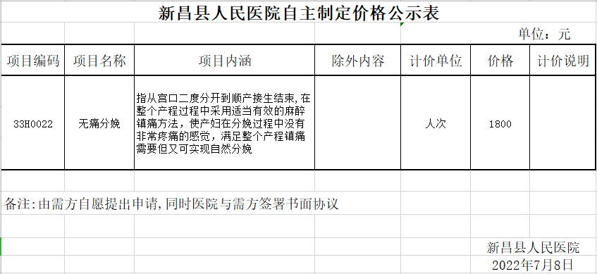 新昌县人民医院自主制定价格公示表