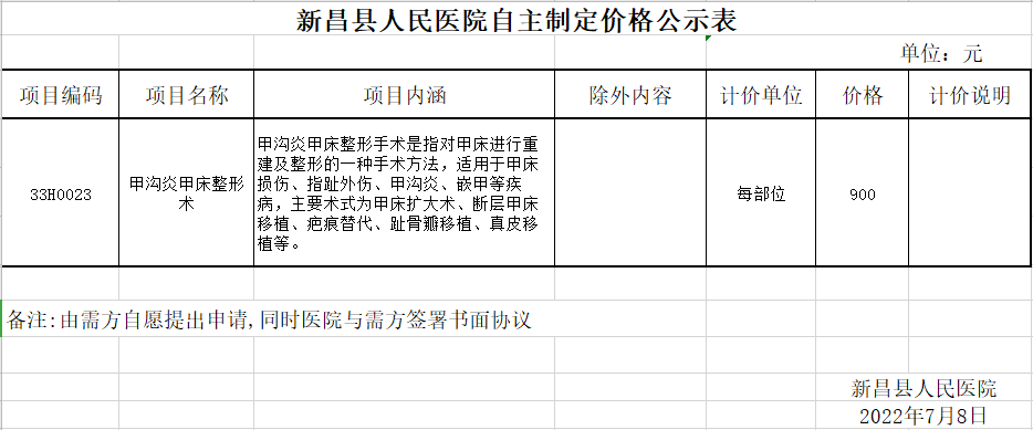 新昌县人民医院自主制定价格公示表