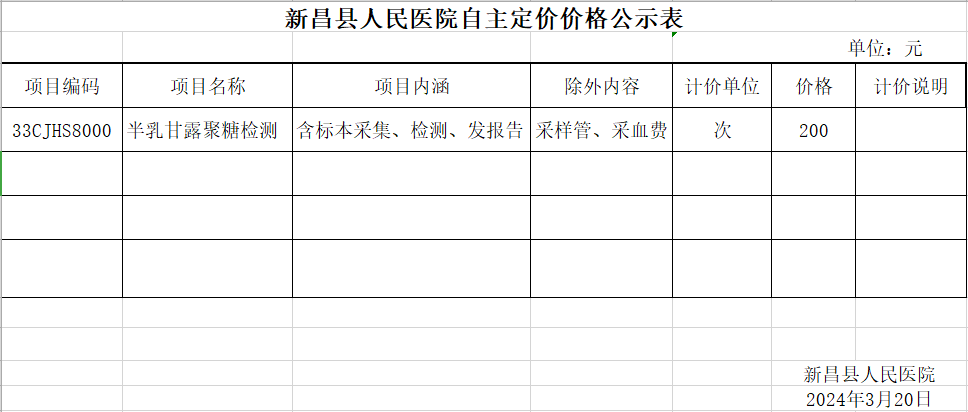 新昌县人民医院自主定价价格公示表