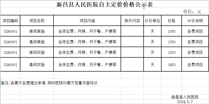 新昌县人民医院自主定价价格公示表