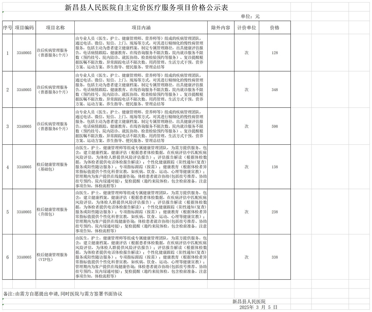 新昌县人民医院自主定价医疗服务项目价格公示表
