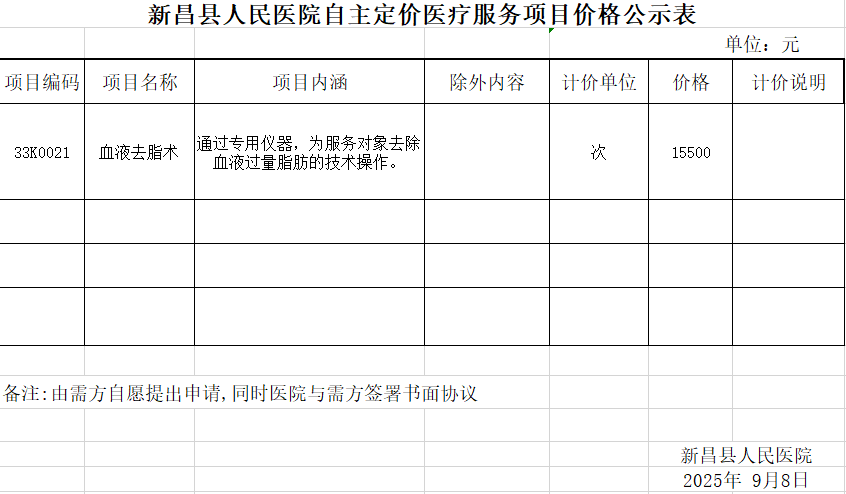 新昌县人民医院自主定价医疗服务项目价格公示表