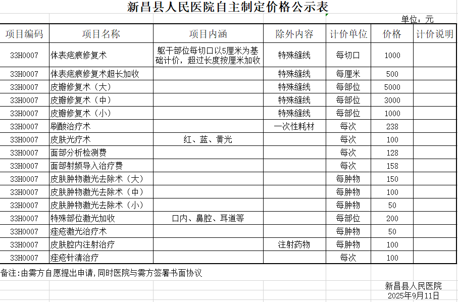 新昌县人民医院自主定价医疗服务项目价格公示表
