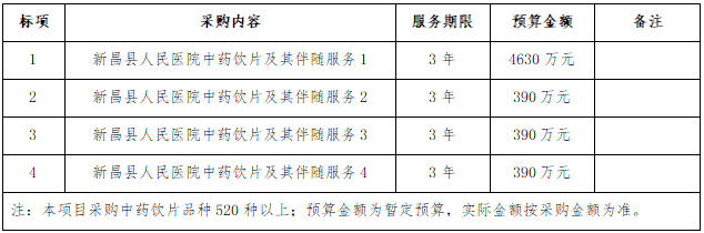根据《政府采购需求管理办法》(财库[2021]22号)及相关政府采购政策,新昌县人民医院就拟采购中药饮片及其伴随服务项目进行市场调研,公开征集相关信息,旨在了解中药饮片产业的发展状况、市场供给、同类项目历史信息以及潜在供应商情况,为后续编制采购需求提供科学依据,现将相关事项公告如下: