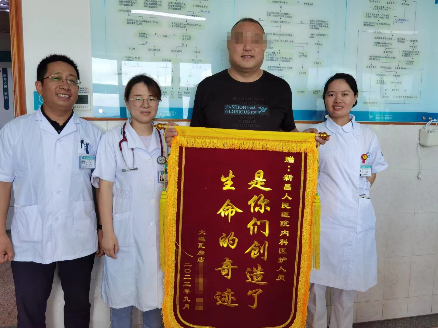 国庆长假期间,新昌县人民医院来了一位跨越千里送锦旗的东北大哥。原来在半年前,县人民医院急诊科、心内科、ICU等科室团队联合协作,挽救了他的生命。 2023年3月30日晚,救护车呼啸着驶进新昌县人民医院,一位来自东北的吕大..