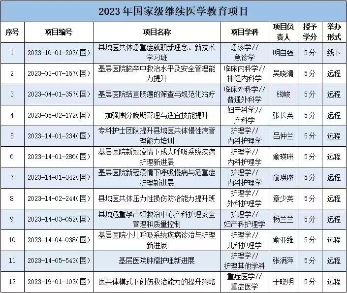 近日,全国继续医学教育委员会办公室公布了2023年第一批国家级继续医学教育项目的通知,新昌县人民医院共获批12个项目,立项数目及涵盖学科均创历史新高,实现了医院科教工作的新突破! 国家级继续医学教育项目是学科领域..