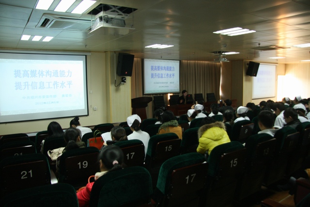 本网讯(杨苗均/文张锴/摄)12月6日,我院邀请市委宣传部新闻处处长黄爱芬来我院作新闻写作与网络舆情应对等方面的知识讲座。各科宣传报道员与网络管理员60多人参加了听讲。 黄爱芬处长原来在市委宣传部网宣处任处长,现在..