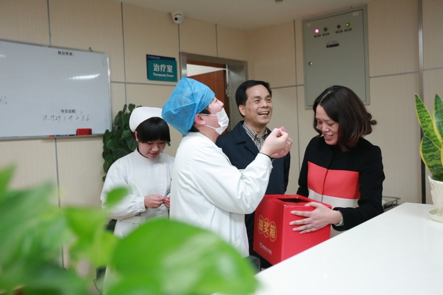 本网讯(张锴/文/摄)马步生风辞旧岁,羊毫挥墨写佳联。2015年2月18日晚上,我院领导一行在院长吕银祥的带领下,看望慰问了坚守岗位的一线值班人员,送上了新年的祝福和真挚的问候。 院领导一行分别走访了城东分院和本部各..